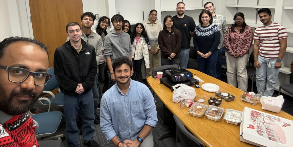 Here is a picture of group at the end of the fall 2025 semester. We also got the opportunity to bid farewell to some group members (Niharika Dalvi and Rahul Thakur) who will be graduating in Jan 2026 and moving on to the next phase of their careers! Sorry we missed you …maybe you can use ‘RFdiffusion’ to add yourself to this picture! Wishing you all a wonderful holiday break and happy new year in advance as well. 🎊